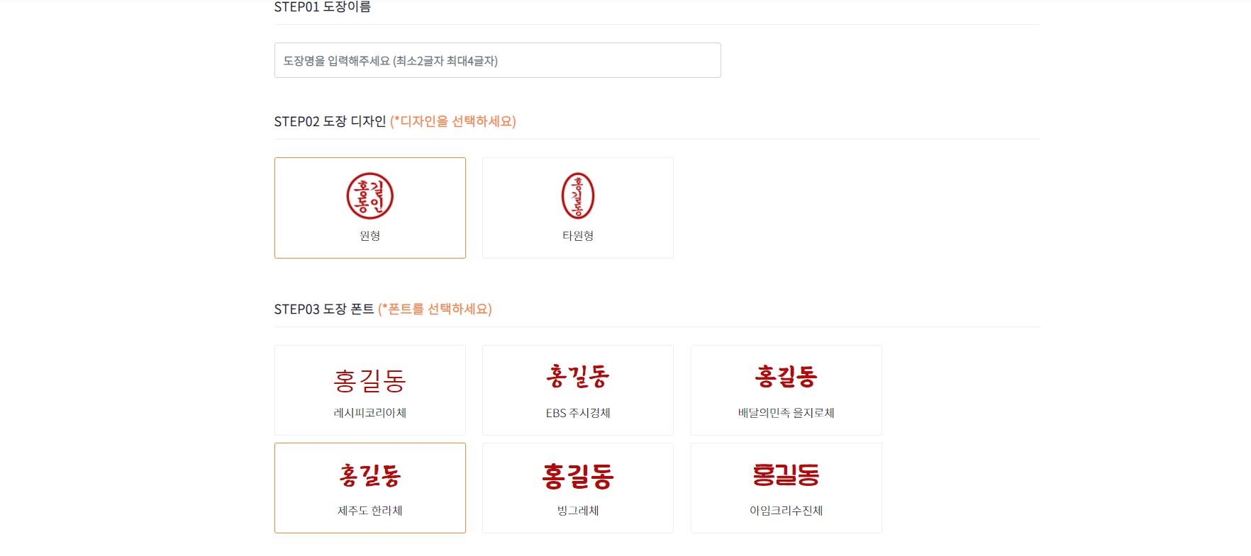 - 도장 폰트도 선택이 가능합니다. 6가지중에 원하는 걸로 선택이 가능 합니다.